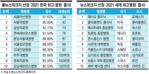 이번 조사에서 아시아 국가 중에서는 8위의 싱가포르 종합병원이 가장 높은 순위를 기록했습니다. 일본의 경우 글로벌 100위에 16위 도쿄대병원을 비롯해 성누가국제병원(18위), 가메다 의료원(48위) 등 우리와 같은 7곳이 이름을 올렸습니다. 하지만 101∼200위에는 우리나라보다 많은 12곳의 병원이 들었습니다.