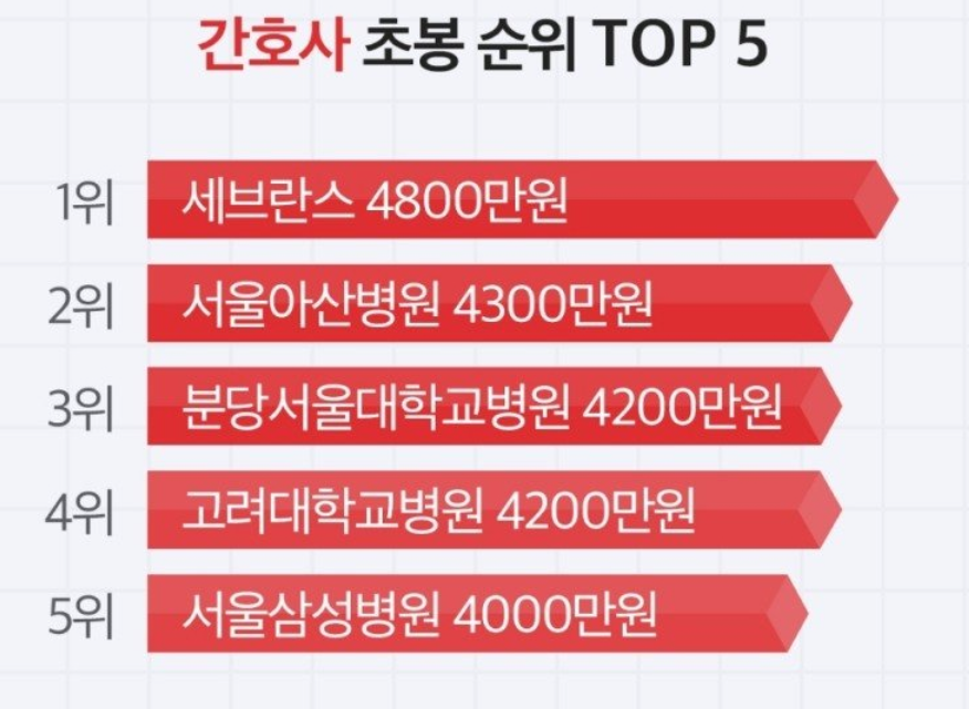 4. 국내 대형병원 간호사 초봉 순위
