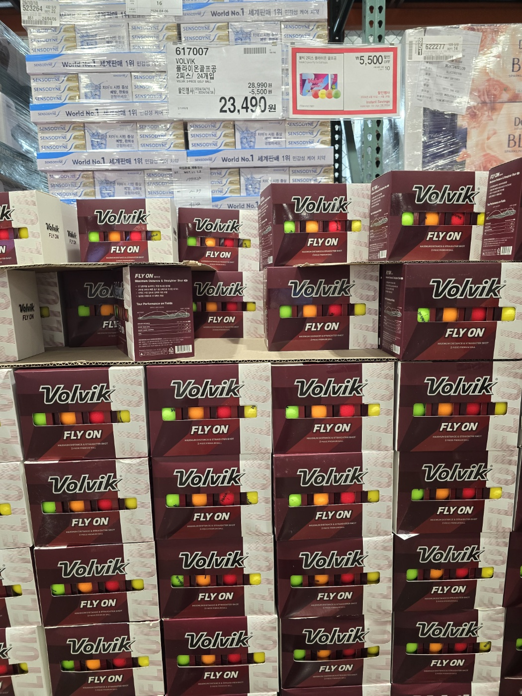 다음으로 코스트코 추천상품입니다. 플라이온 골프공 24개입이 정가 28,990원에서 5,500원 할인되어 23,490원이라는 합리적인 가격에 선보이고 있습니다. 알록달록한 색깔이라 필드에 나갔을 때 눈에 더 잘 띄는 제품입니다.