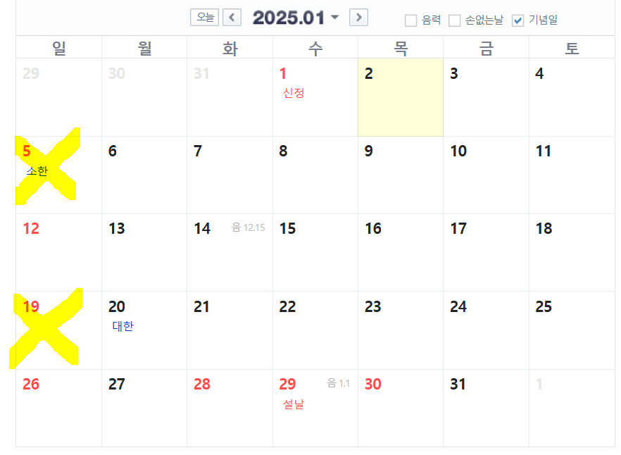 특히 2025년 1월에는 설 연휴가 있어서 구정 연휴 때 휴무인지 아닌지 걱정이 됩니다.