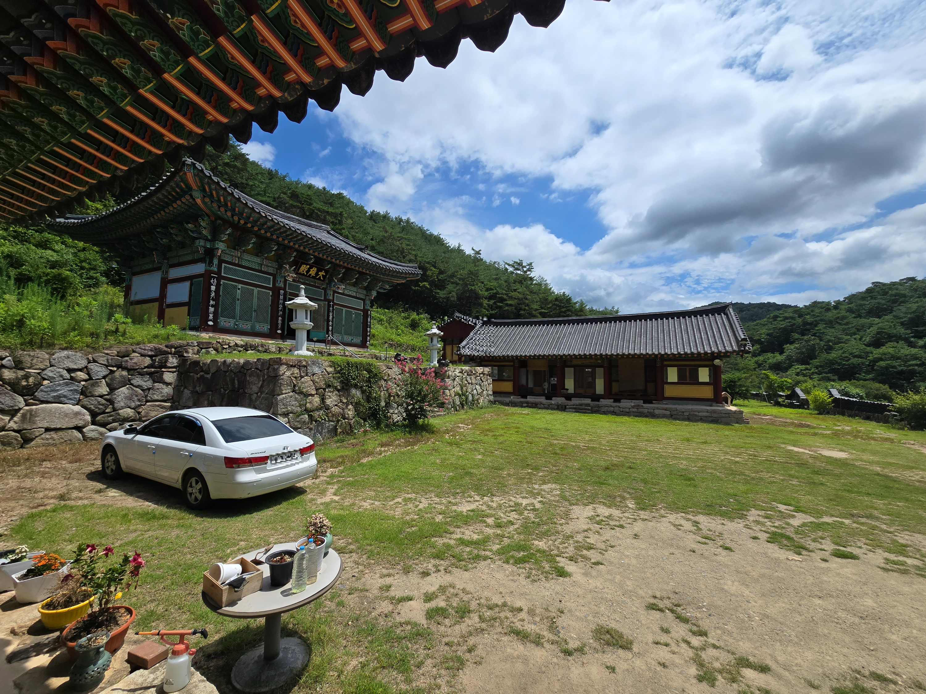 용담사 앞마당에 넓게 주차할 공간이 펼쳐집니다