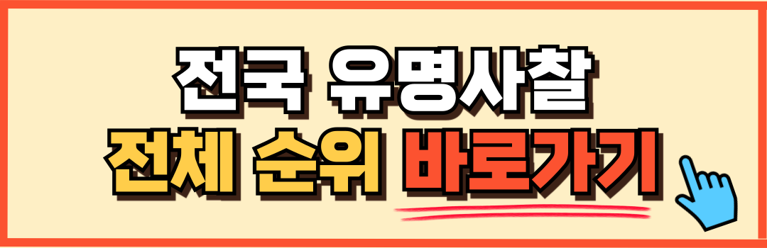 정확한 순위는 없지만 미국 대표 언론 CNN에서 발표한 한국의 가장 아름다운 사찰 33선이 있습니다.
