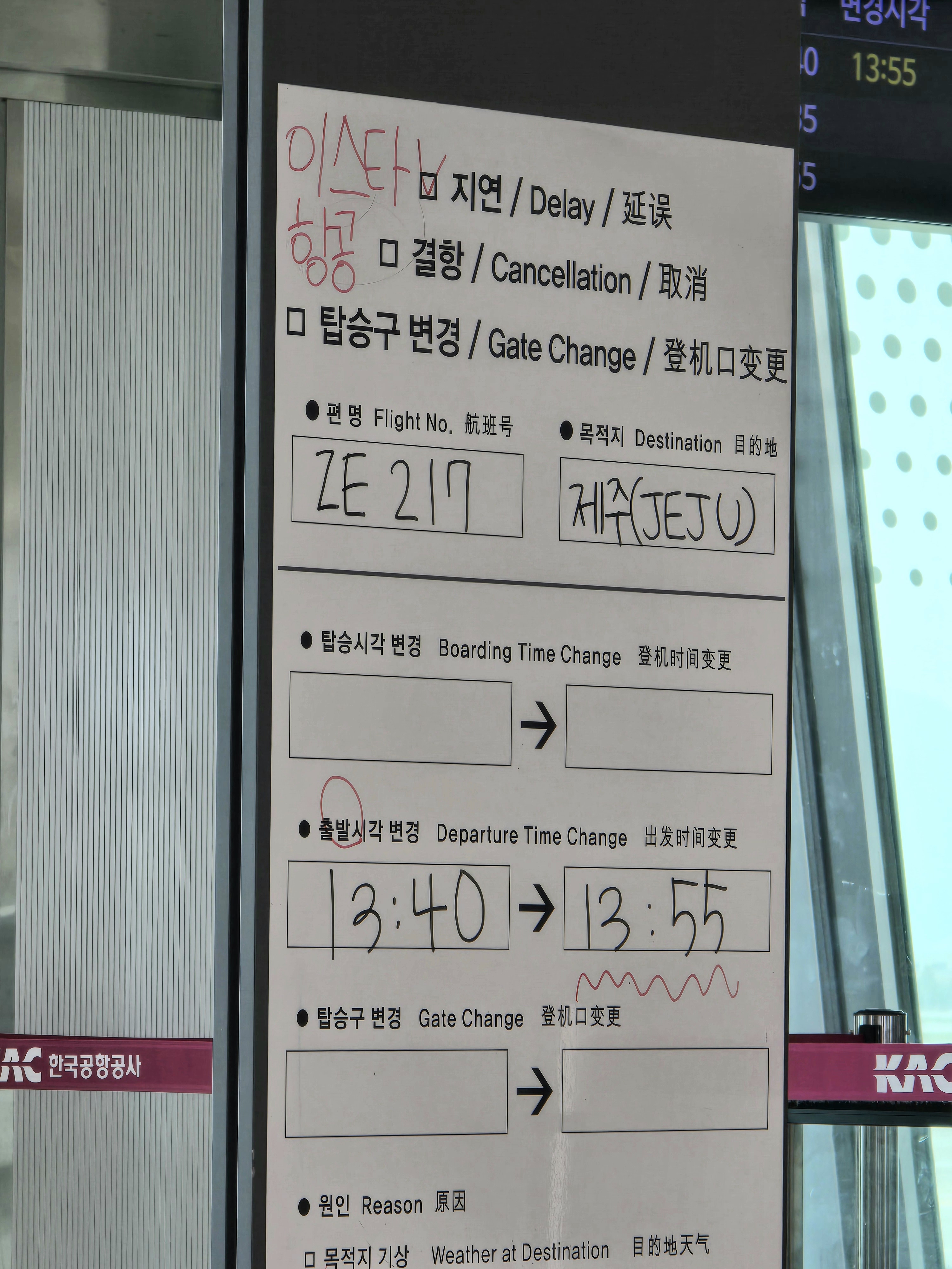 제가 탑승할 이스타항공 ZE217편입니다