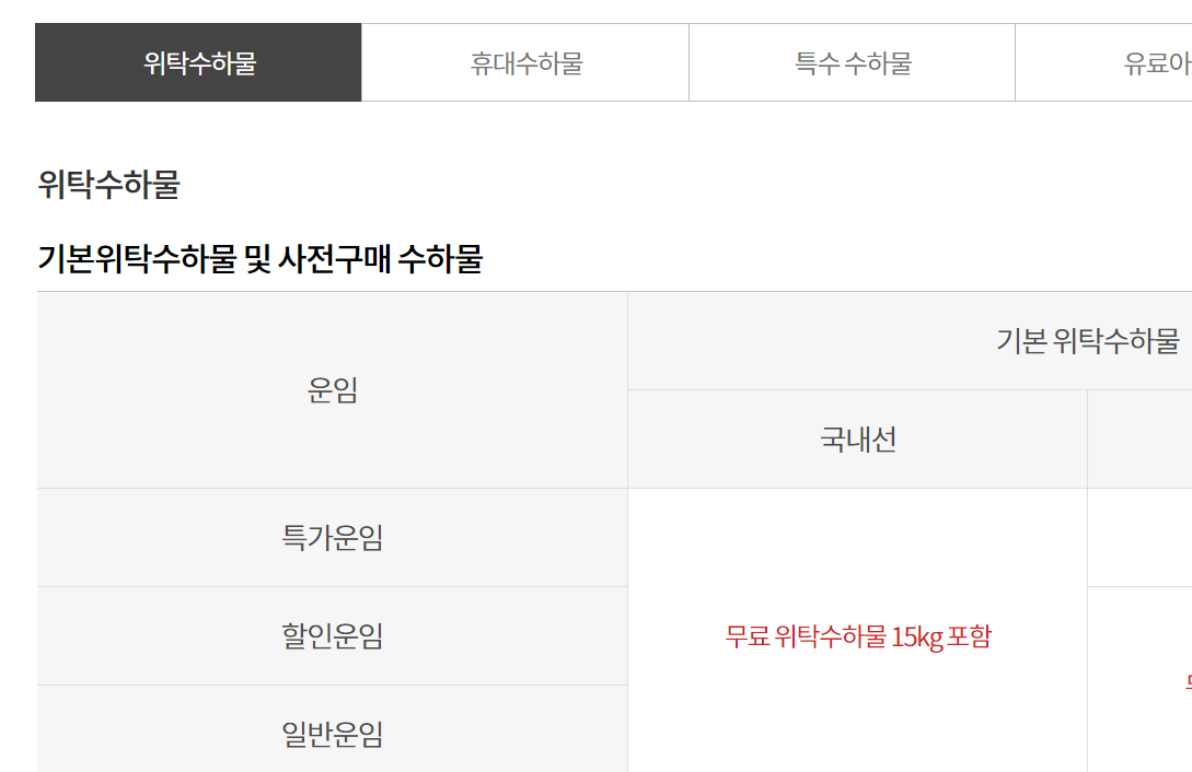 국내선은 1kg 초과시 10,000원이 부과됩니다
