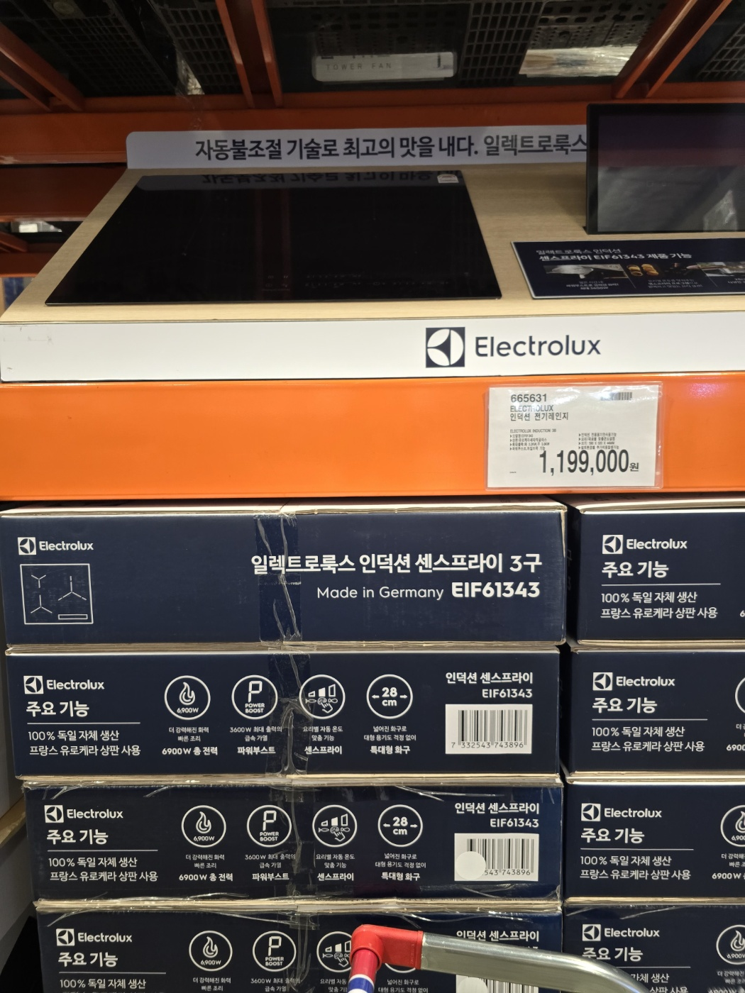 다음은 Electrolux에서 나온 인덕션 센스프라이 3구입니다. 가격은 119만원입니다. 일렉트로룩스는 독일산 제품으로 100% 독일 자재 생산이며 프랑스 유로케라 상판을 사용하여 보다 튼튼한 내구성을 자랑합니다. 총 전력이 6900W라서 가격대가 나가는 것으로 보이는데요. 가성비 좋아보입니다.