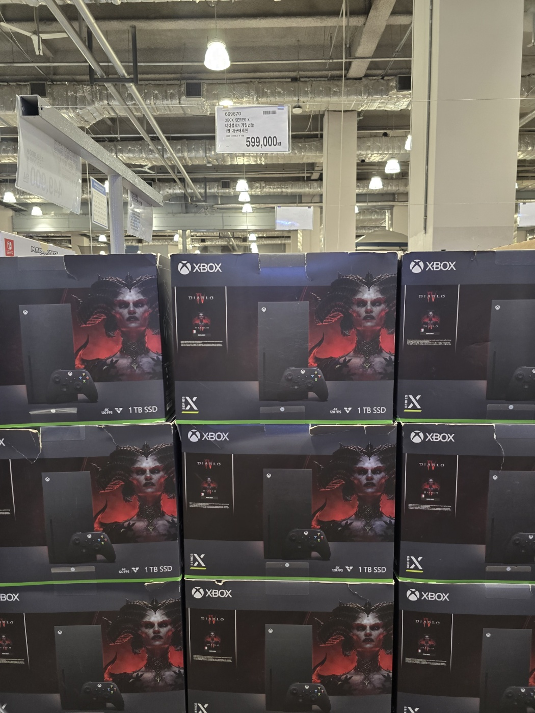 코스트코 세일 상품 2번째는 디아블로 4 게임번들입니다. 1인 1개 구매로 구매 수량에 제한이 있습니다. 디아블로에 중독되면 절대 빠져나올 수 없다고 하는데 포장지부터 포스가 후덜덜 합니다. 저는 게임과 거리가 멀어서 구경만 했네요.