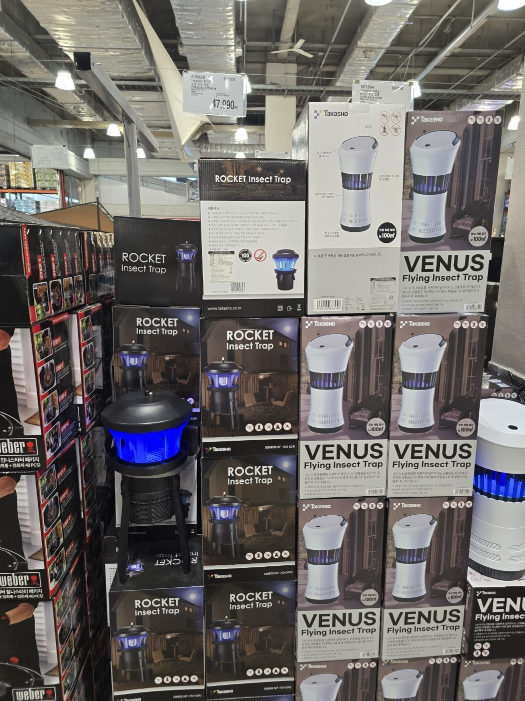 다음은 코스트코 캠핑욤품 필수템인 로켓 버그 트랩입니다. 날씨가 더워질 수록 캠핑갈 때 반드시 챙겨야하는 것이 버그 트랩인데요. 코스트코에서 파는 로켓 버그트랩이 4만 7천원대에 출시되었습니다. 윗부분에 손잡이가 달려있어서 간편하게 사용 가능합니다. 주변의 100제곱미터에 있는 벌레들을 박멸할 수 있습니다.