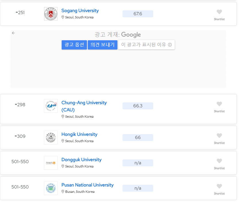 공학분야, 의생명분야, 자연과학분야, 사회과학 분야 별 국내대학 순위는 다음 글에 이어집니다. 감사합니다.